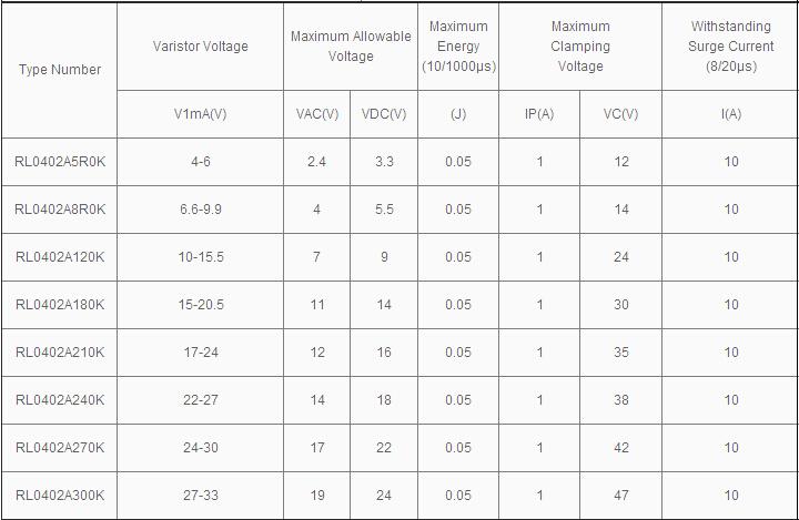 压敏电阻0402系列功能与特色